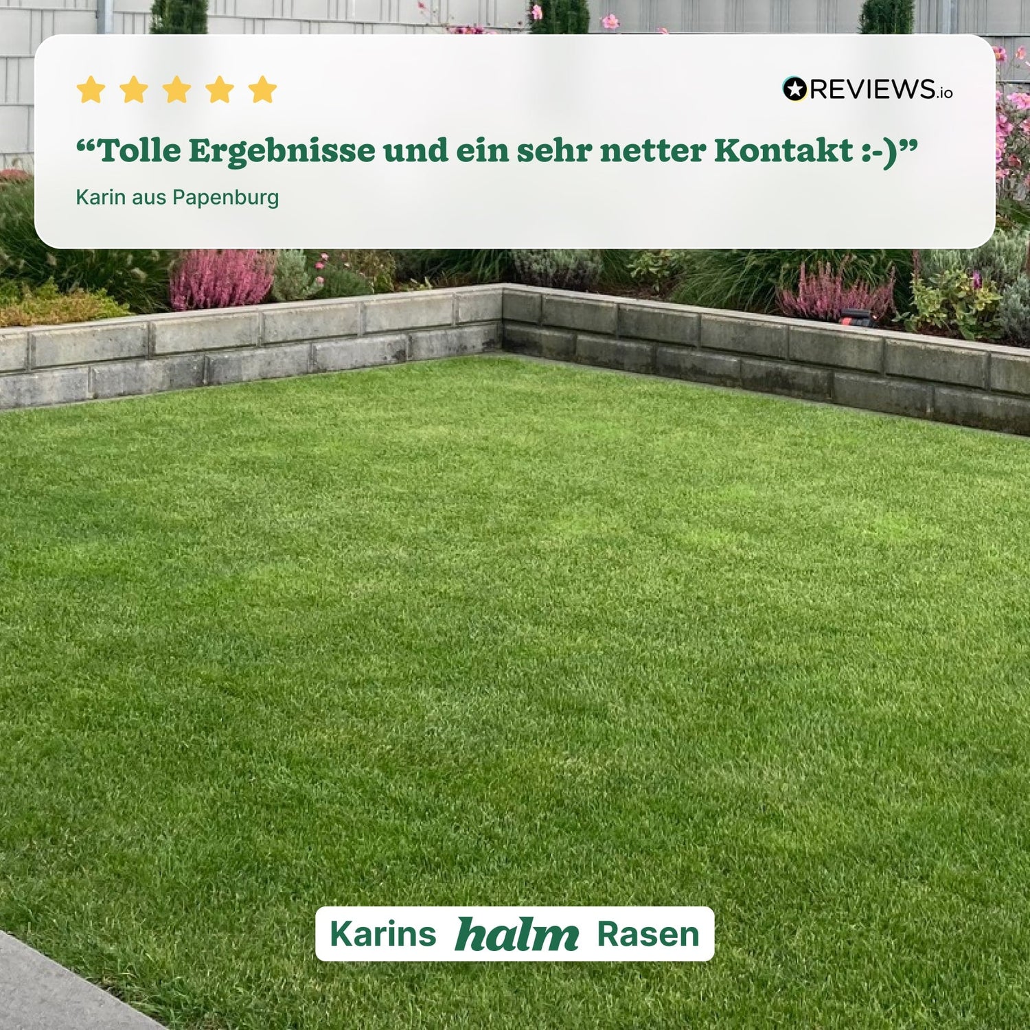 Wir sind ein junges Unternehmen aus Deutschland, das es sich zur Aufgabe gemacht hat, jedem Zugang zu gesundem & schönem Rasen zu ermöglichen. Unsere Mission ist es, dir dabei zu helfen, deinen Rasen in dein "Freiluft-Wohnzimmer" zu verwandeln.