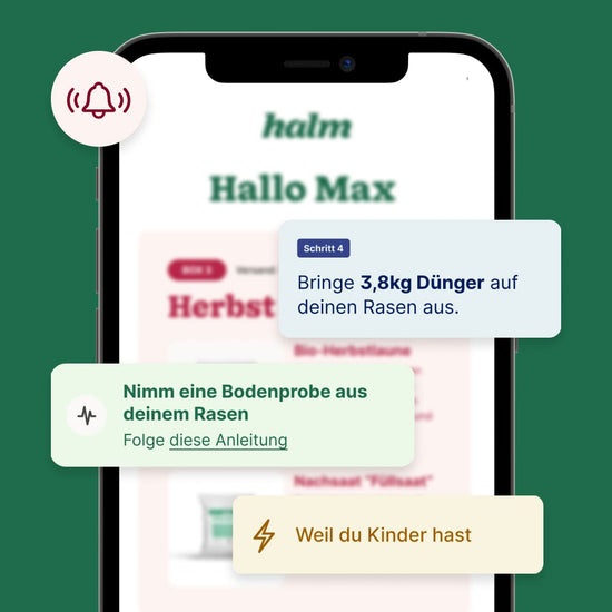 Erhalte personalisierte Handlungsanweisungen zur Rasenpflege, einfache Tipps & Tricks und verwalte deine anstehenden Lieferungen.